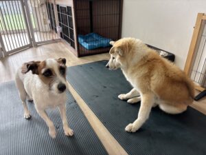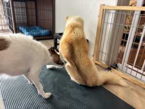 おじぃワンのコロちゃんが気になるココちゃん🥰