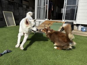 わんちゃんがちょっぴり怖がりさんのソッちゃん🍀でもちっちゃいわんちゃんに自分からクンクンしに行ったり、すごい成長です👏😍