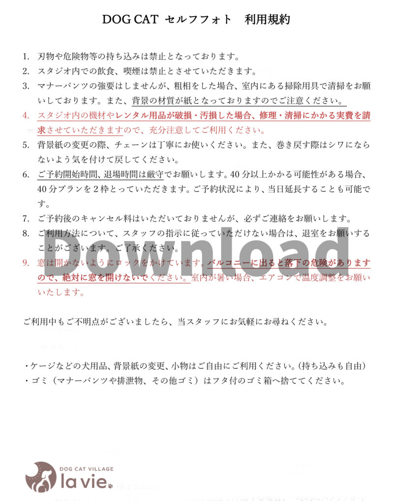 Dog Cat セルフフォト利用規約は コチラからDownload もできます。
